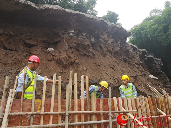 连续几天,抢通人员加强临边安全维护,加紧新设计挡墙基坑开挖清理,进入砌筑“衡重式”片石混凝土挡墙、设置永久性工程的重要施工环节。预计经过12个日夜的连轴施工,整个挡墙修复工程将在8月1号左右完工。